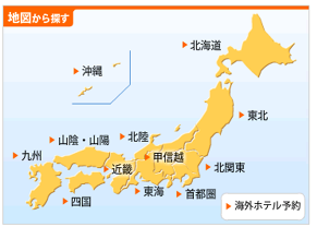 日本地図による選択で、直感的に地域を選択できるようになっている。